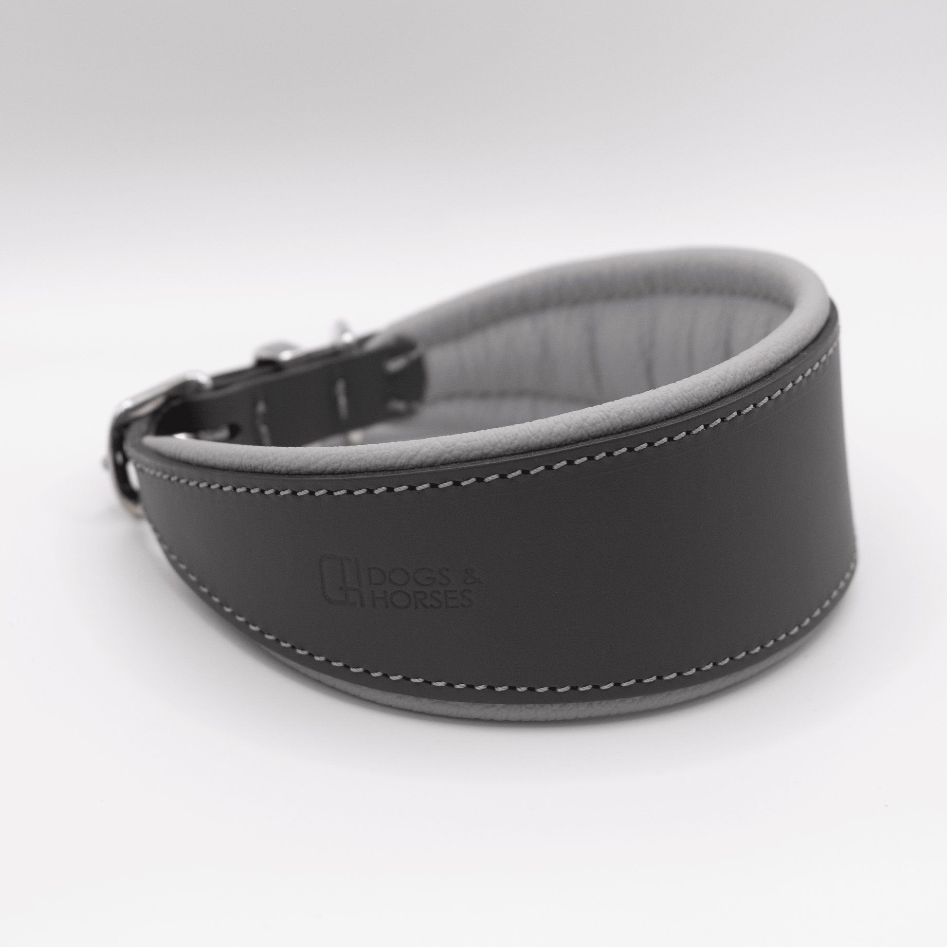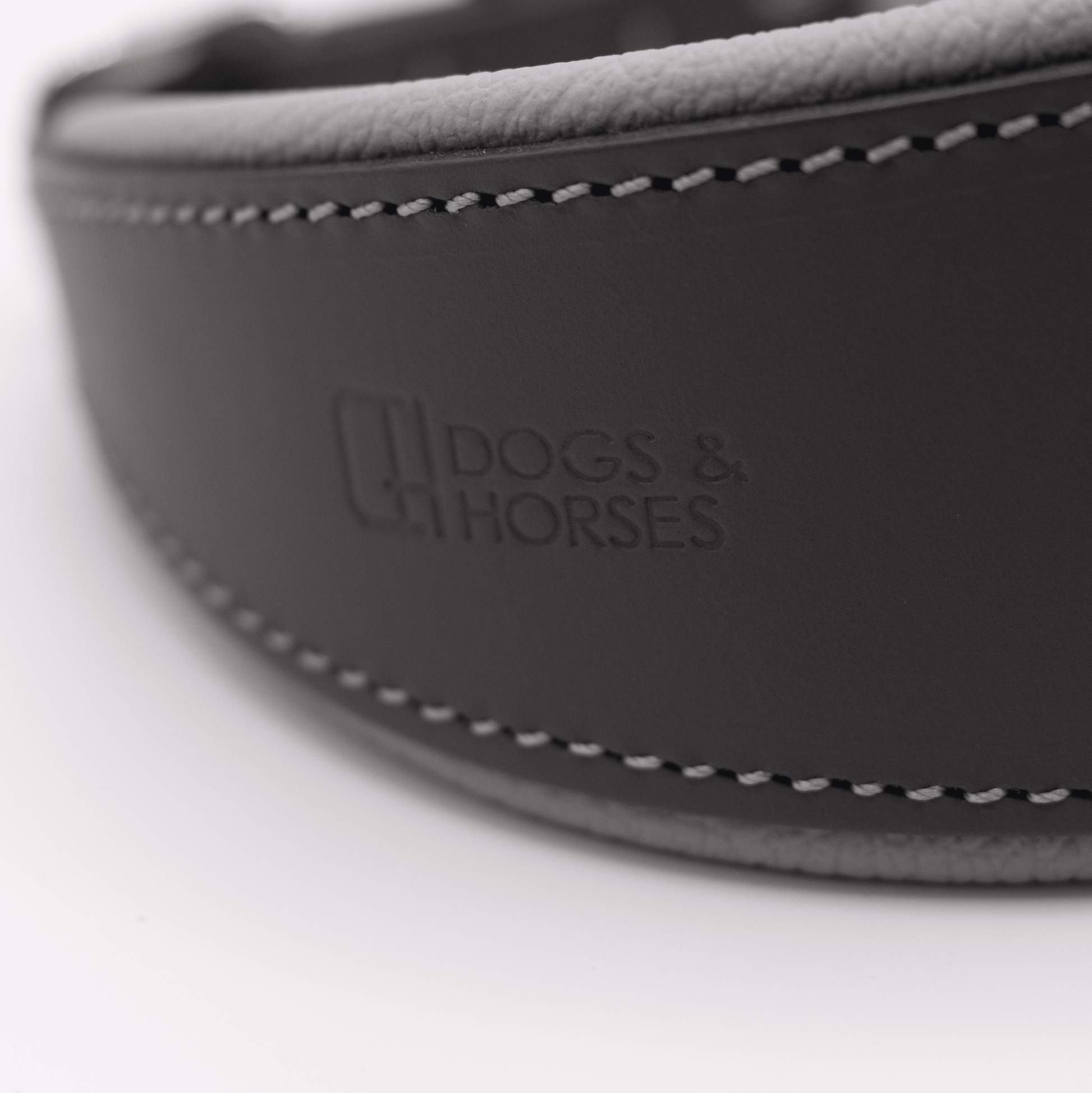D&H Padded Leather Hound Collar Charcoal and Grey