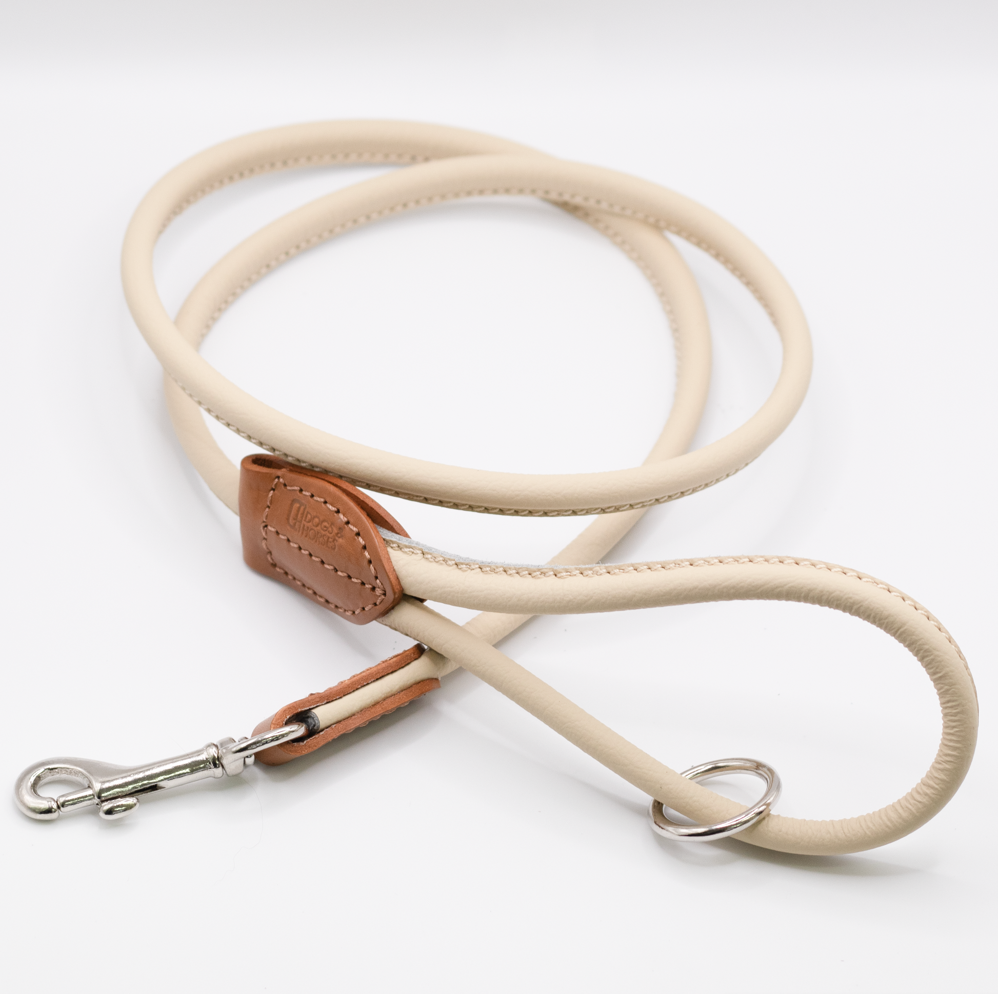 Rolled Soft Leather Dog Lead Cream